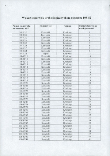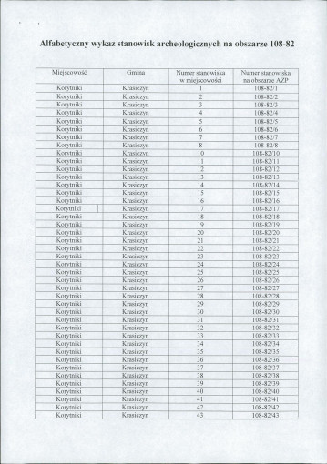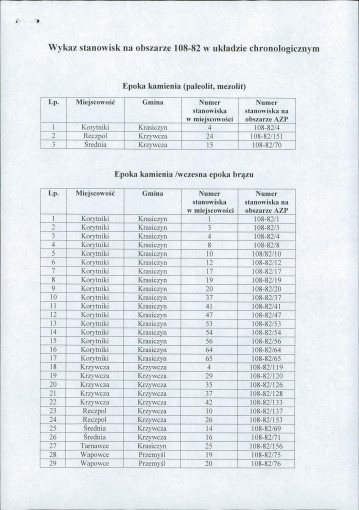 spis stanowisk wg numerów na obszarze