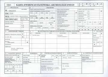 Register: Ewidencja zabytków archeologicznych