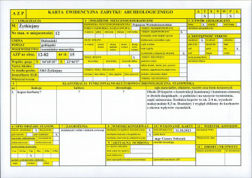 Zabytek.pl Please, login to view this document. KEZA AZP Area: 012-082 AZP Area Number: 15 AZP number in the city: 12 Document date: 2013-10-11 Register: Ewidencja zabytków archeologicznych Document Id: PL.1.9.ZIPOZ.NID_A_28_EA.299567 Add to collection Licence Please, login to add notes. Login Not registered yet? Register now! KEZA 2 mapa obszaru AZP 1:25 000 1
