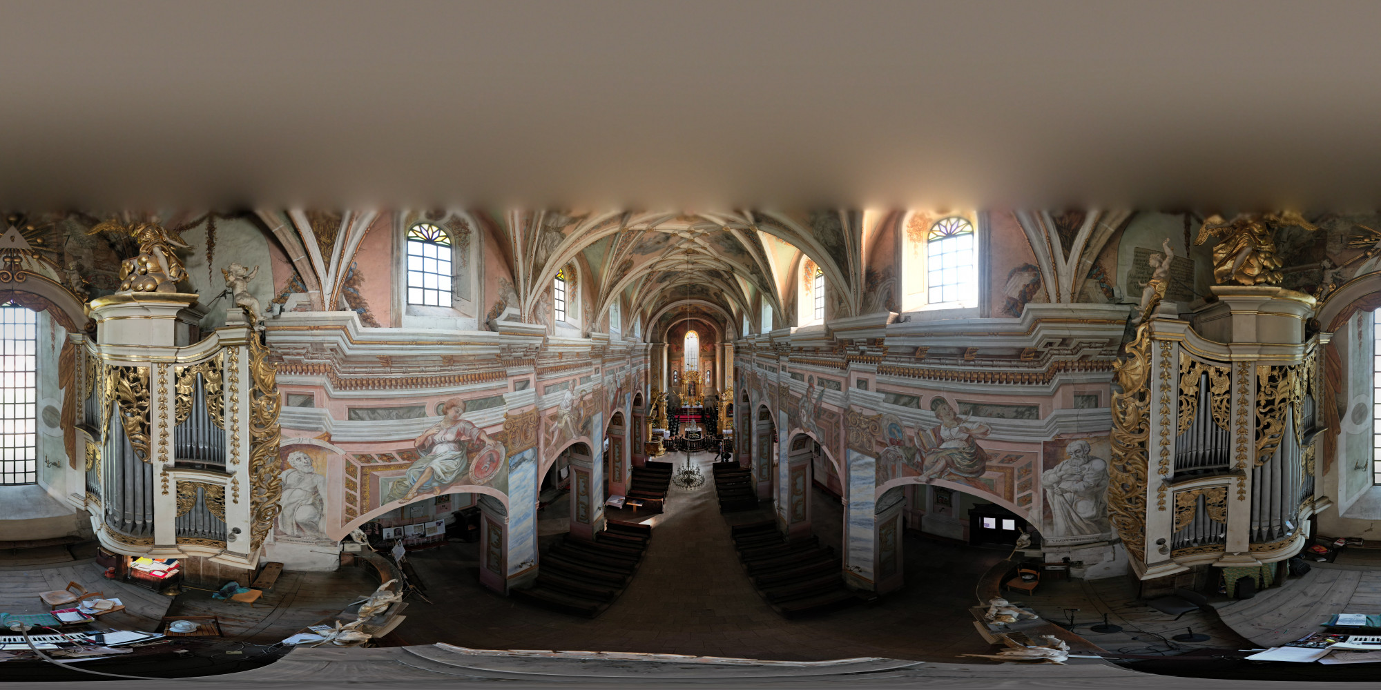 The ceilings of the church were damaged during World War II. Since the mid-20th century, conservation and research work has been conducted intermittently on the premises.