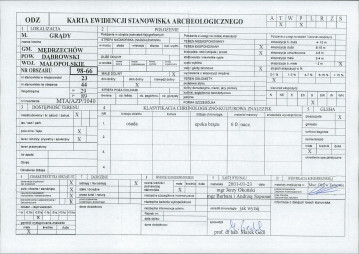 Register: Ewidencja zabytków archeologicznych