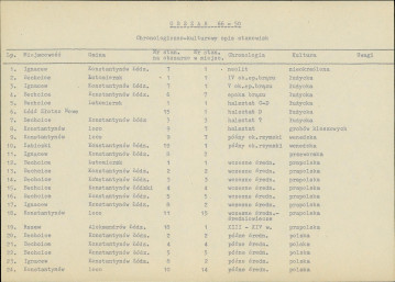 spis stanowisk wg numerów na obszarze