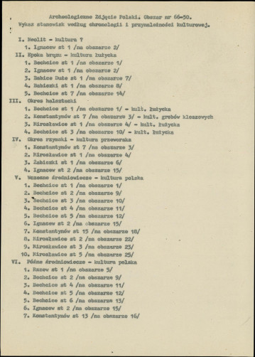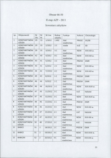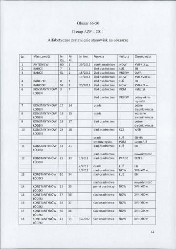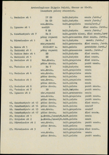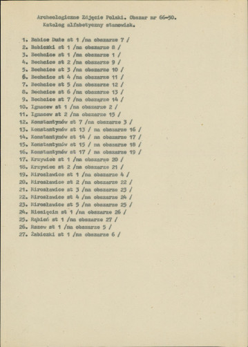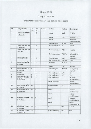spis stanowisk wg numerów na obszarze
