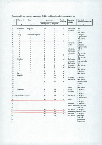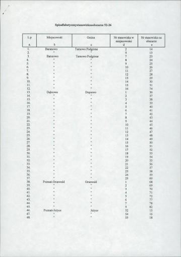 spis stanowisk wg numerów na obszarze