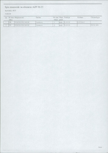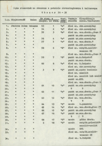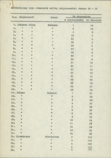 spis stanowisk wg numerów na obszarze