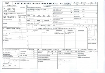Register: Ewidencja zabytków archeologicznych