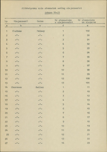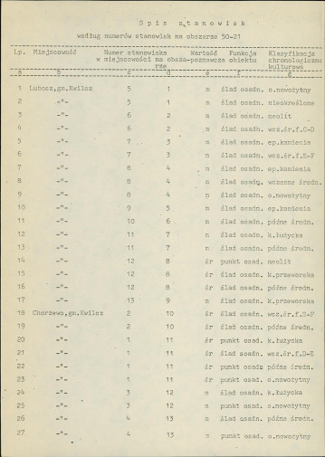 spis stanowisk wg numerów na obszarze