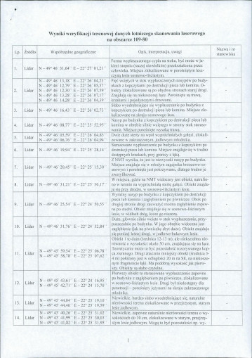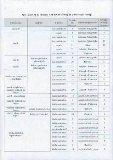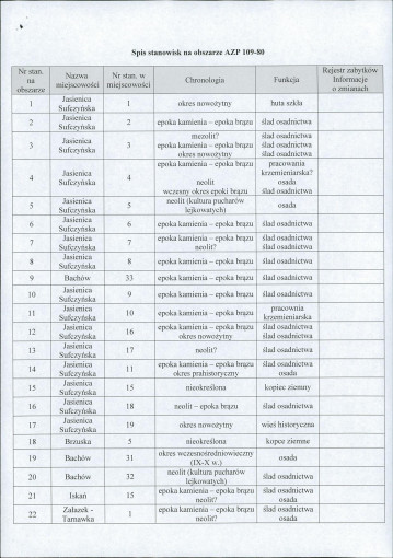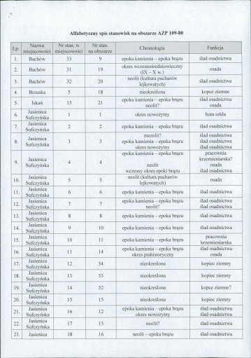 spis stanowisk wg numerów na obszarze