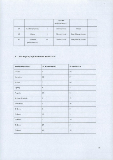 spis stanowisk wg numerów na obszarze