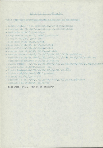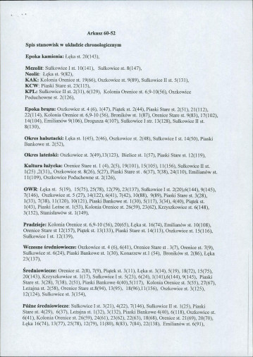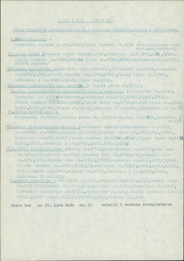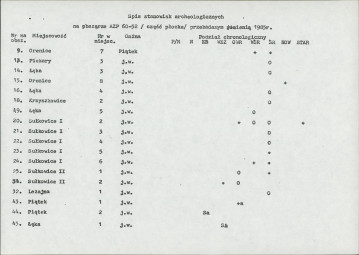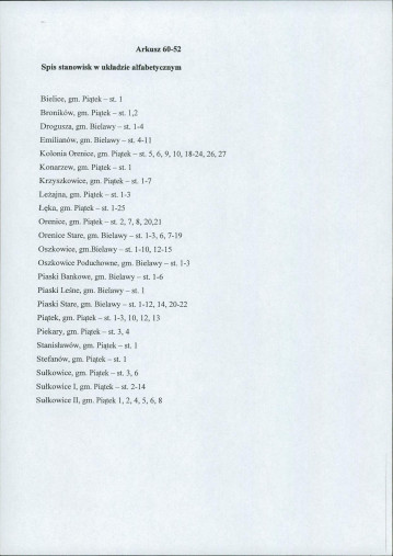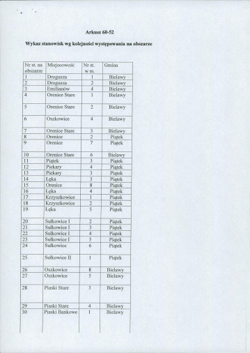 spis stanowisk wg numerów na obszarze