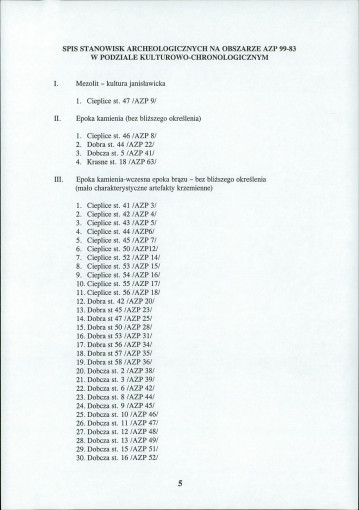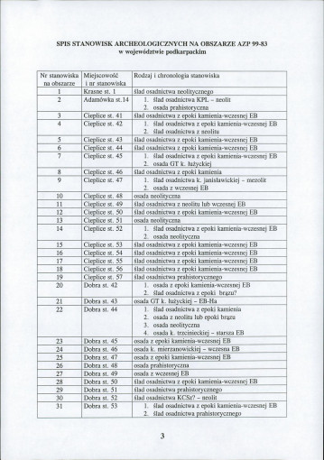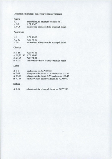 spis stanowisk wg numerów na obszarze