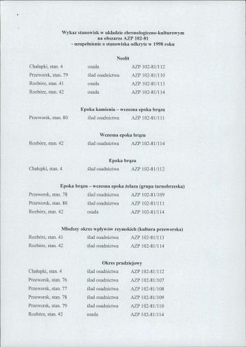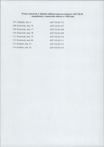 spis stanowisk wg numerów na obszarze
