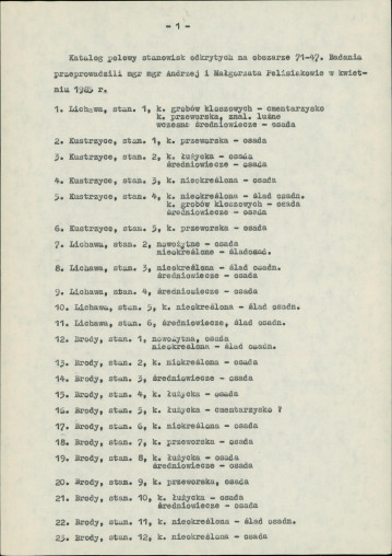 spis stanowisk wg numerów na obszarze