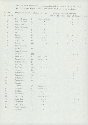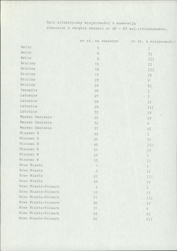 spis stanowisk wg numerów na obszarze