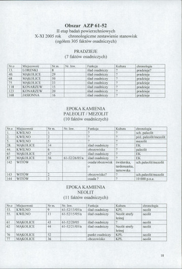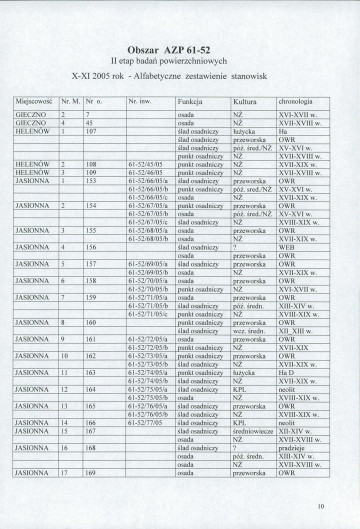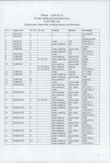 spis stanowisk wg numerów na obszarze