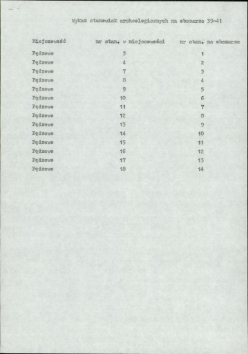 spis stanowisk wg numerów na obszarze