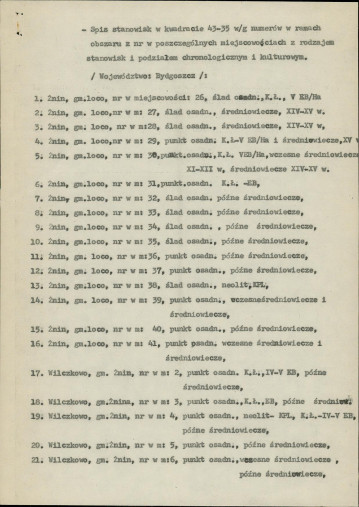 spis stanowisk wg numerów na obszarze