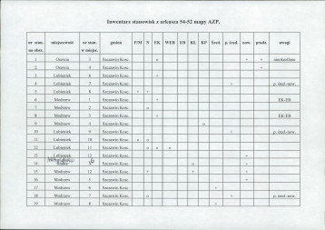 spis stanowisk wg numerów na obszarze
