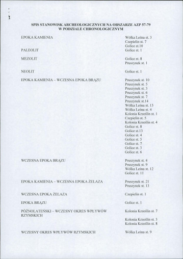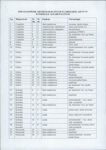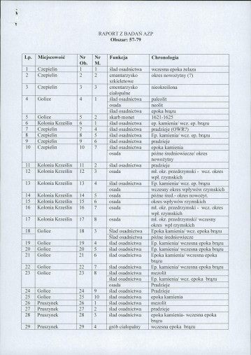 spis stanowisk wg numerów na obszarze
