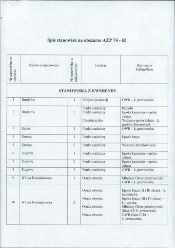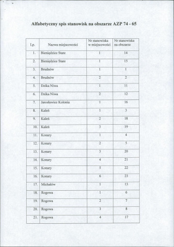 spis stanowisk wg numerów na obszarze
