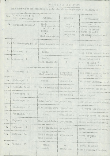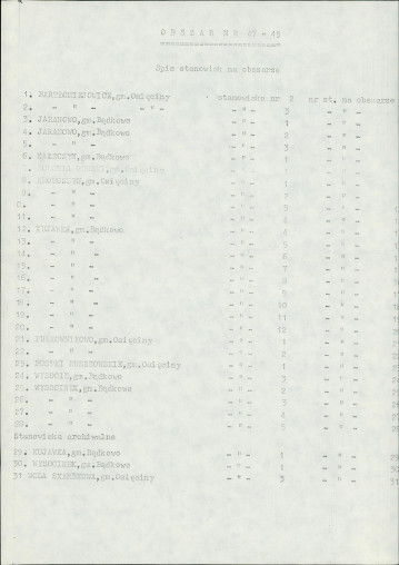 spis stanowisk wg numerów na obszarze