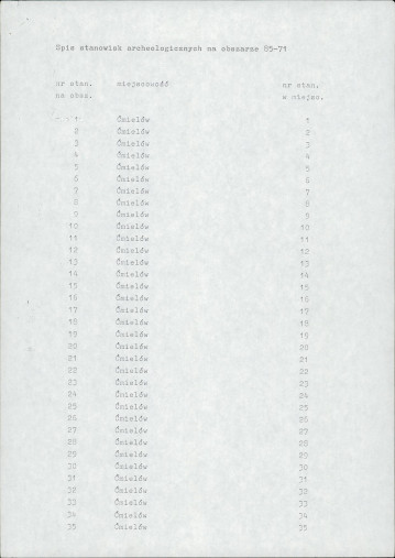 spis stanowisk wg numerów na obszarze
