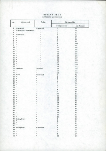 spis stanowisk wg numerów na obszarze