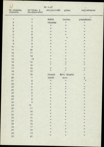 spis stanowisk wg numerów na obszarze