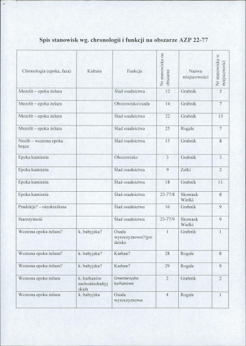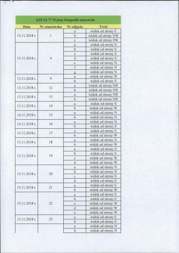 spis stanowisk wg numerów na obszarze