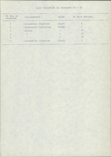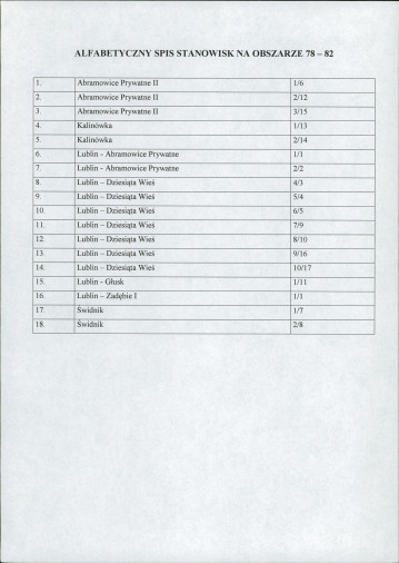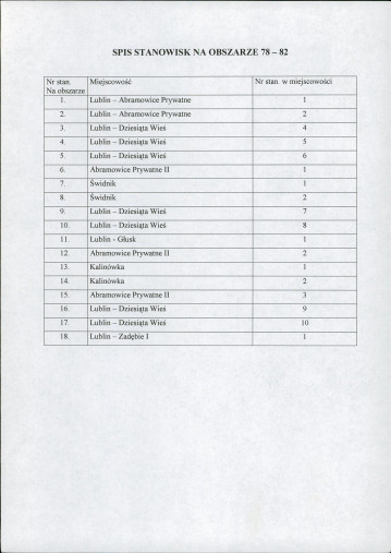 spis stanowisk wg numerów na obszarze