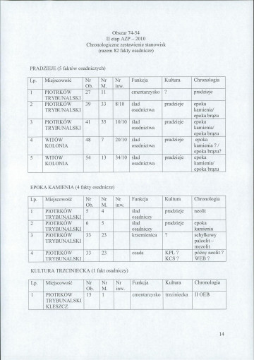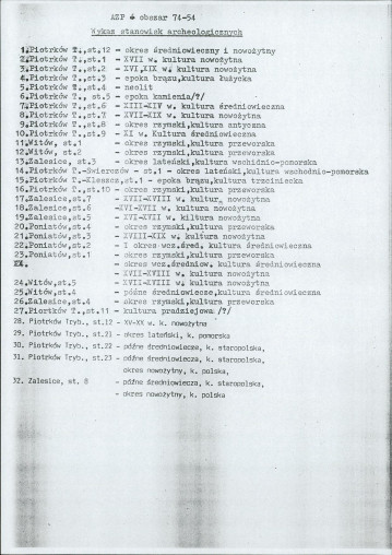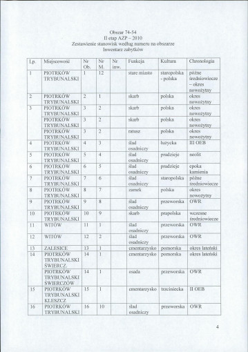 spis stanowisk wg numerów na obszarze